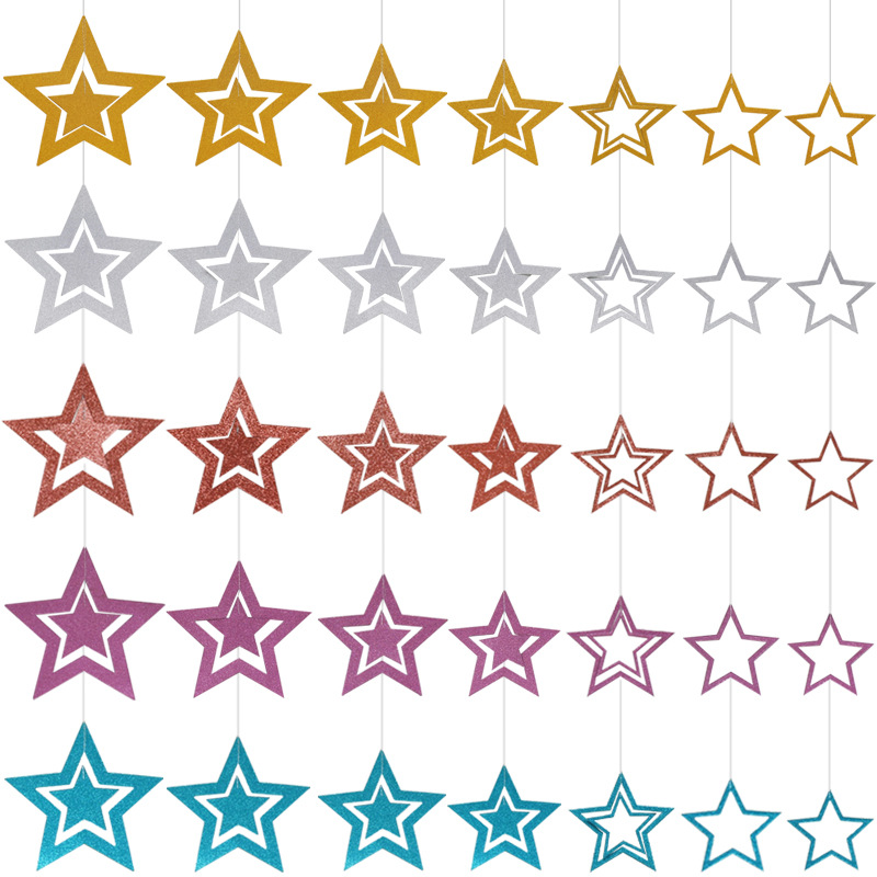 透かし彫りの星の7つのセットはクリスマスの飾りを飾ります。