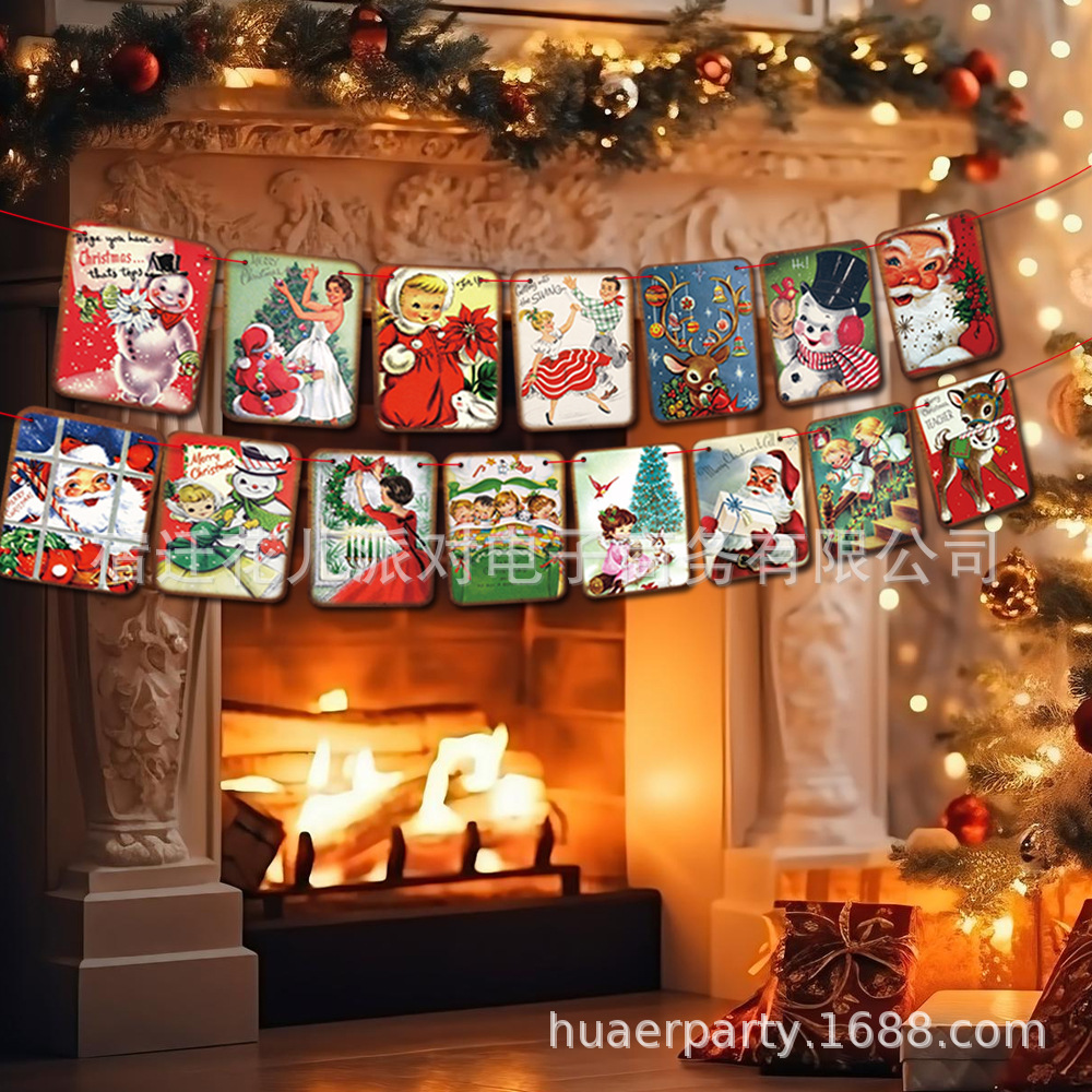 クリスマスレトロな四角い横断幕ビクトリア風暖炉装飾旗クリスマス花新商品特価