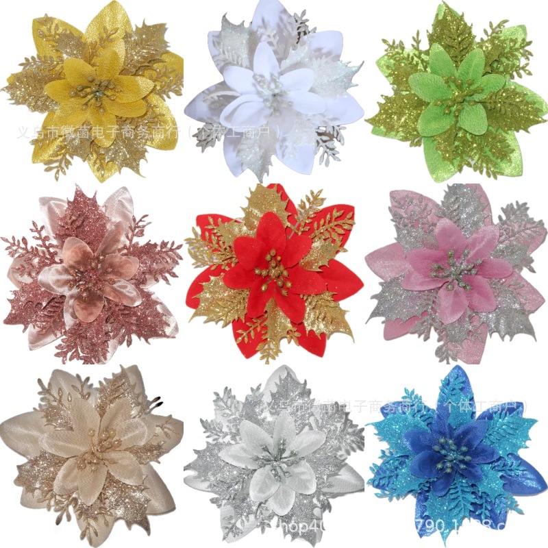 クリスマス金粉クリスマス花銀クリスマスツリー装飾シミュレーション花クリスマス花輪部品金辺クリスマス造花