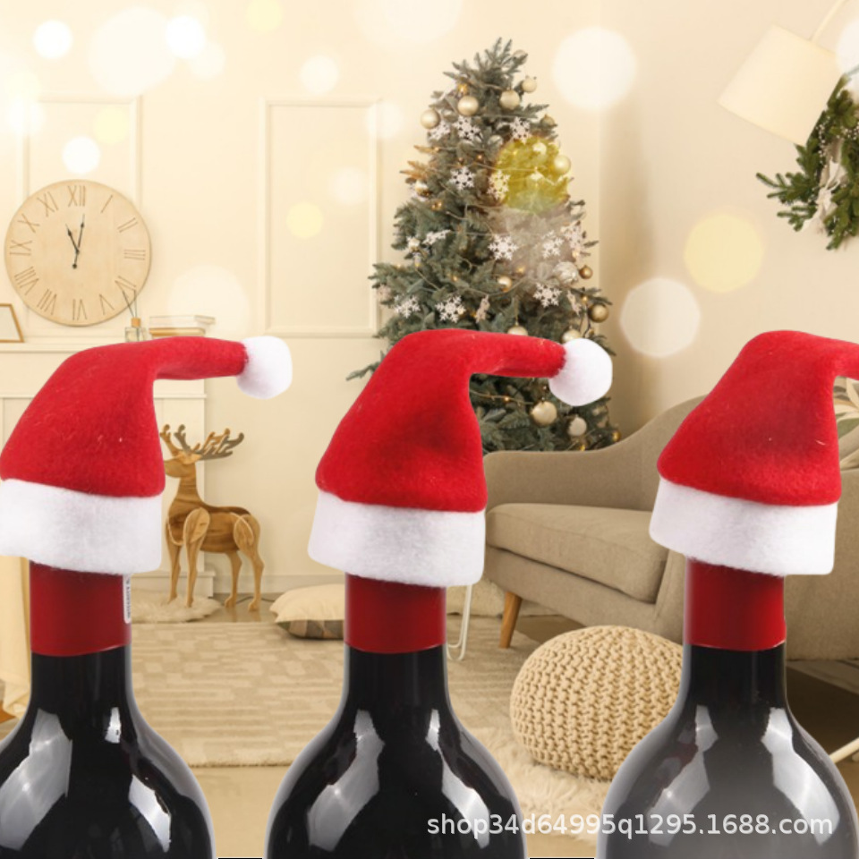 クリスマス装飾クリスマス帽子不織布帽子クリスマス帽子カトラリーセットクリスマスワインボトル装飾卸売ワインボトルセット