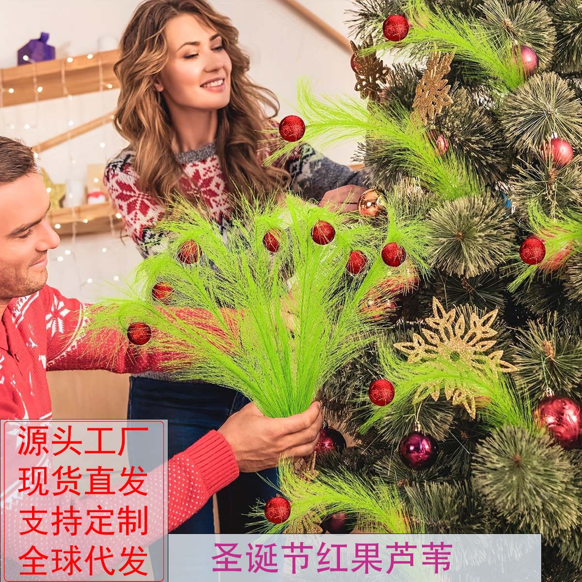 クリスマスツリー飾り パンパスグラス エルフグラス クリスマスリード ボール付き 室内 屋外 庭の装飾