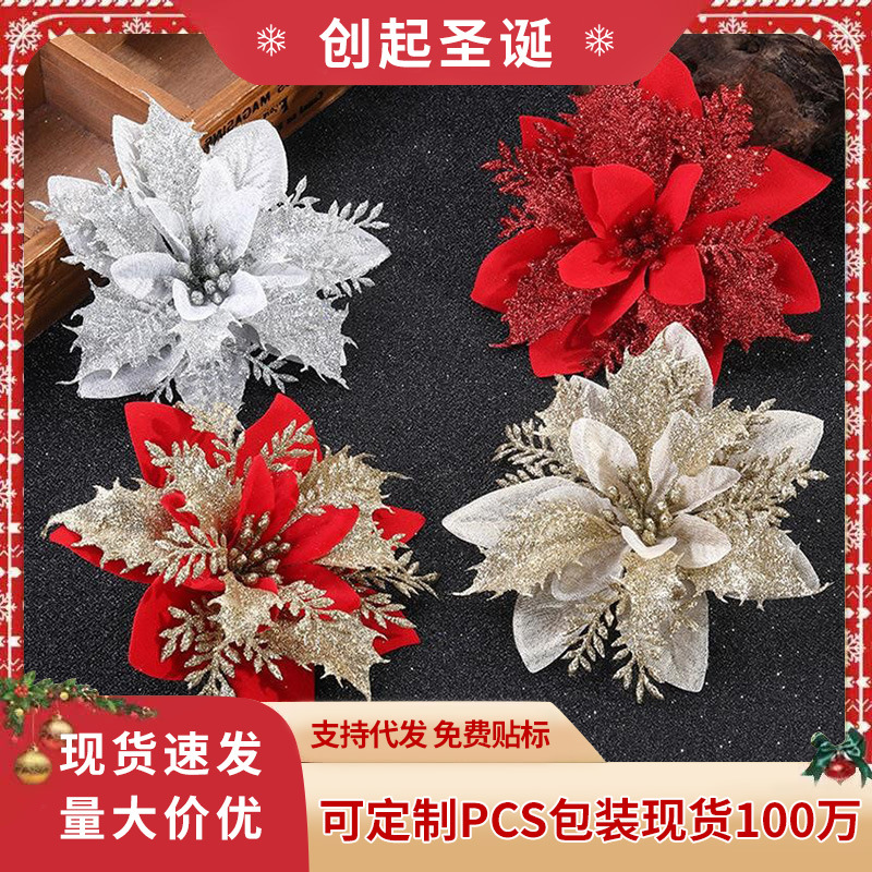 一品紅金粉クリスマス花銀クリスマスツリー装飾シミュレーション花クリスマス花輪部品金辺クリスマス造花