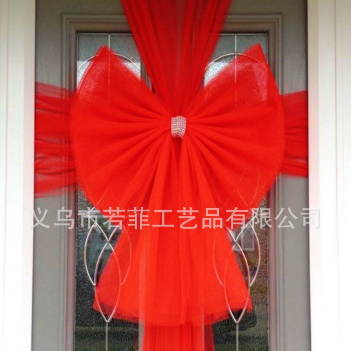 クリスマスの入り口の巨大な赤い蝶結びセット欧根紗二重豪華な全包装飾紗花輪カーテン