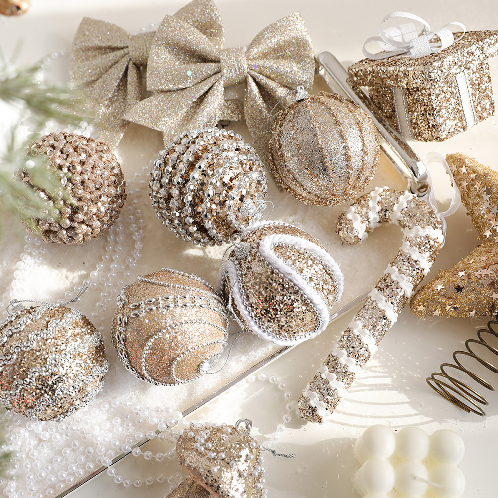 2023新しいクリスマスツリーの装飾ペンダントクリスマスの装飾シャンパン色の白い爆発星