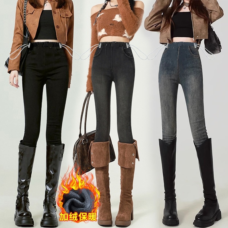 Ytl妊婦のズボン冬のベルベットのジーンズの足のズボンの修理ズボンの鉛筆のズボンの足のズボン