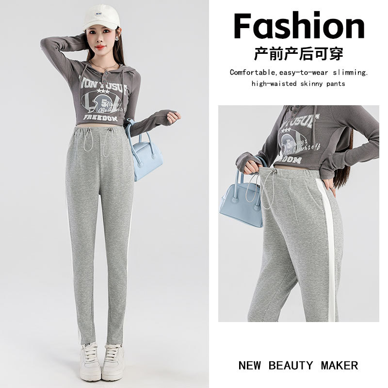 実拍2024春秋新潮母外着純色鉛筆ズボン小足ズボン腹ズボンファッション妊婦ズボン