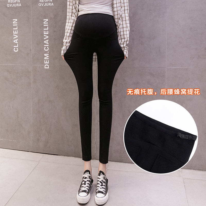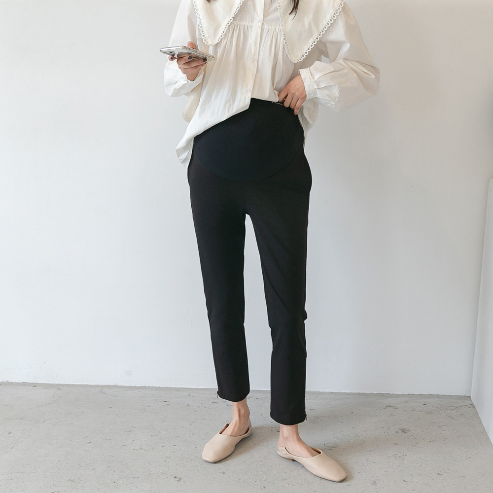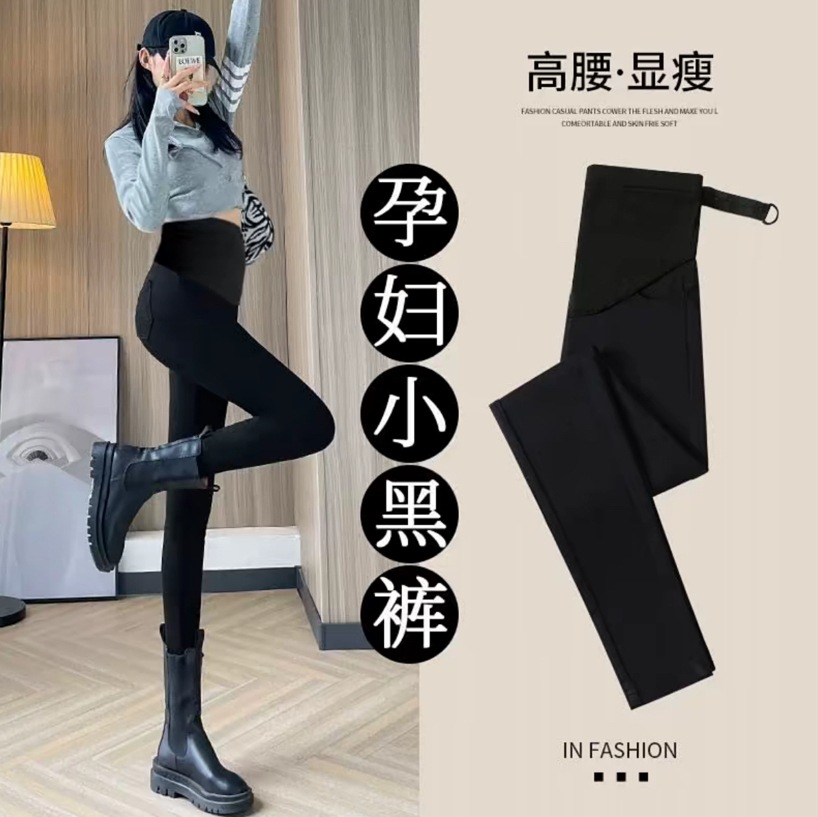 2022新型秋冬の薄いタイプの妊婦のズボンの腹の純綿の妊婦は黒い白い鉛筆の小さい足のズボンを修理します。