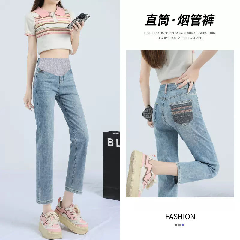 9352 越境ヨーロッパとアメリカのマタニティジーンズ春と秋のペンシルパンツ腹部サポートパンツアウターウェアカジュアル痩身9点パンツ