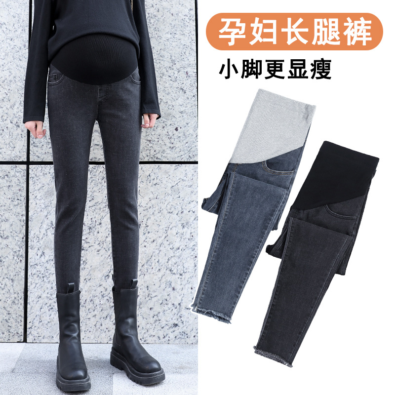 妊婦のジーパンの秋冬のタイプの外はズボンの鉛筆のズボンを着て痩せています。