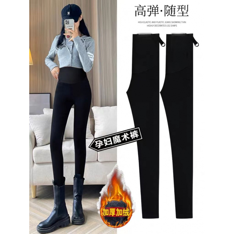 大きいサイズの妊婦のズボンの秋冬のベルベットの外はタイトな身を着てやせている黒色のマジックの小さい足のズボンの百合の鉛筆のズボンの春秋服を現します。