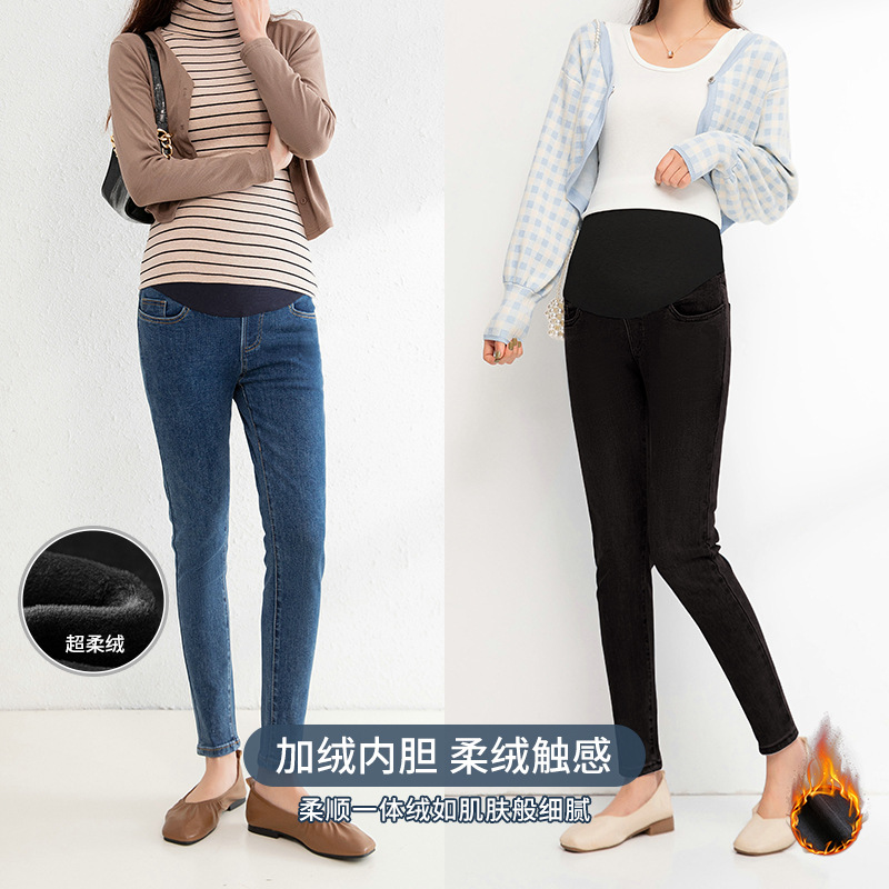妊婦服冬の新型妊婦ズボンの小さい足のズボンの保温のジーパンの女性とベルベットの厚いズボンの弾力性の鉛筆のズボン