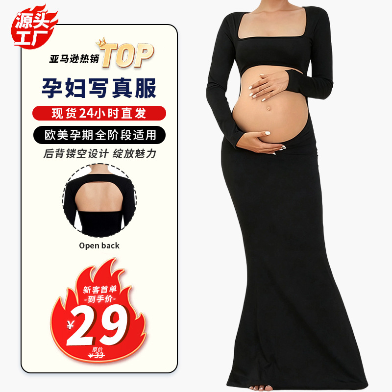 ヨーロッパとアメリカのクロスボーダー妊婦写真撮影服弾性マタニティドレスフィッシュテールスカートバックレスベリーフロアレングススカート女性用