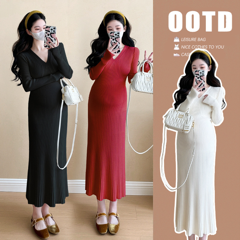 メーカー直販現物クロスボーダー商品ソースセクシースリムvネック長袖妊婦ワンピース多色オプション