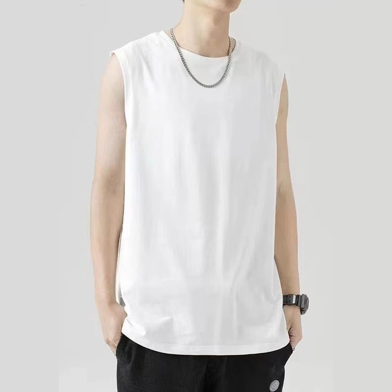 ファッショナブルな純白の T シャツ ベスト メンズ 夏 ボトリング シャツ ノースリーブ アウター インナー ティーンエイジャー フィットネス ランニング