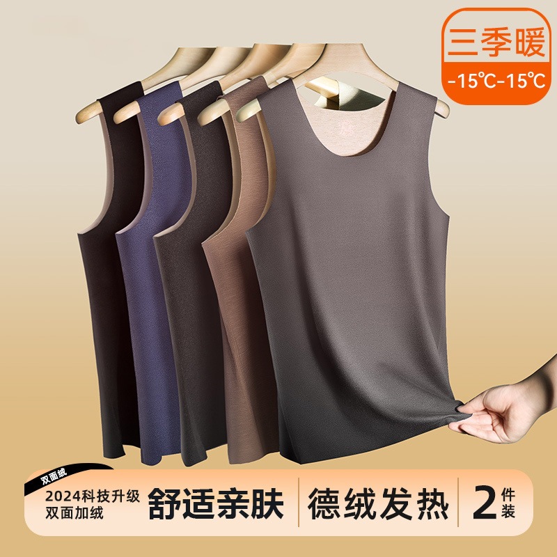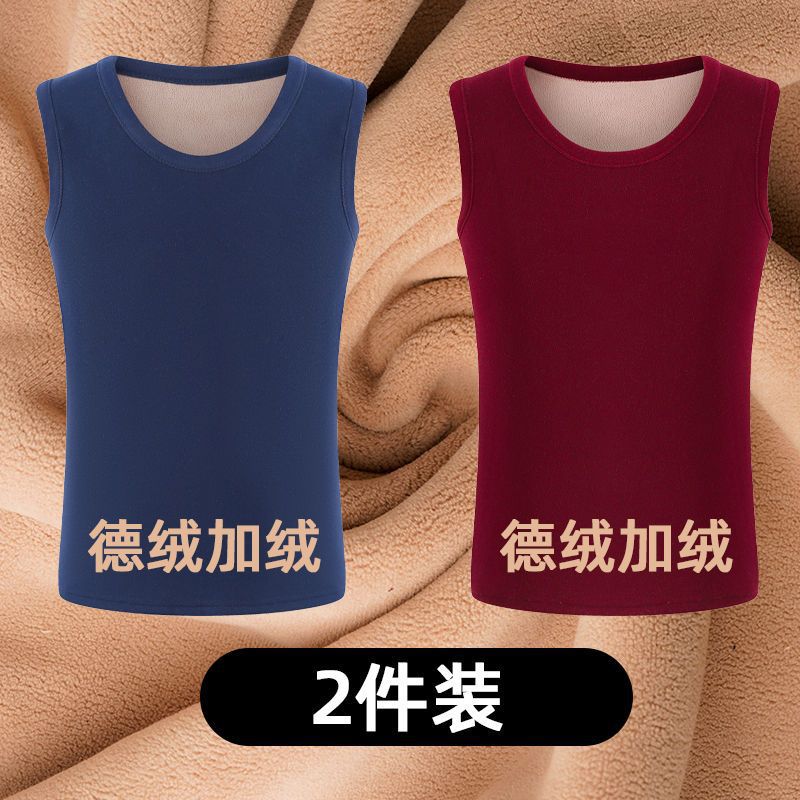 ベルベット保温ベスト男性秋冬肩袖なしtシャツ下着に防寒ガードルを着ている