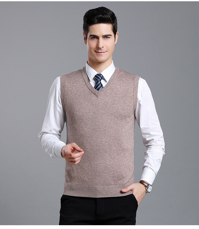 2023秋冬セーターベスト男性vネックゆるい通気性保温セーター馬甲純色鶏心襟肩