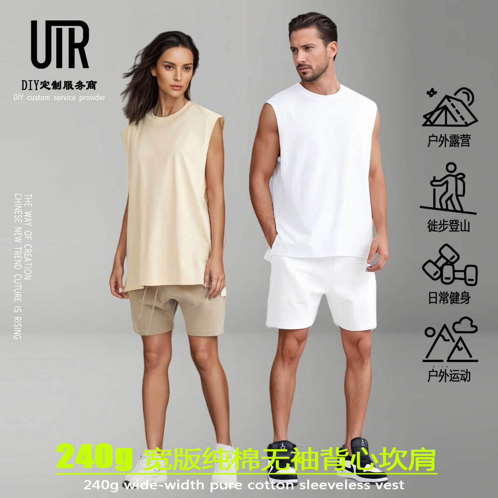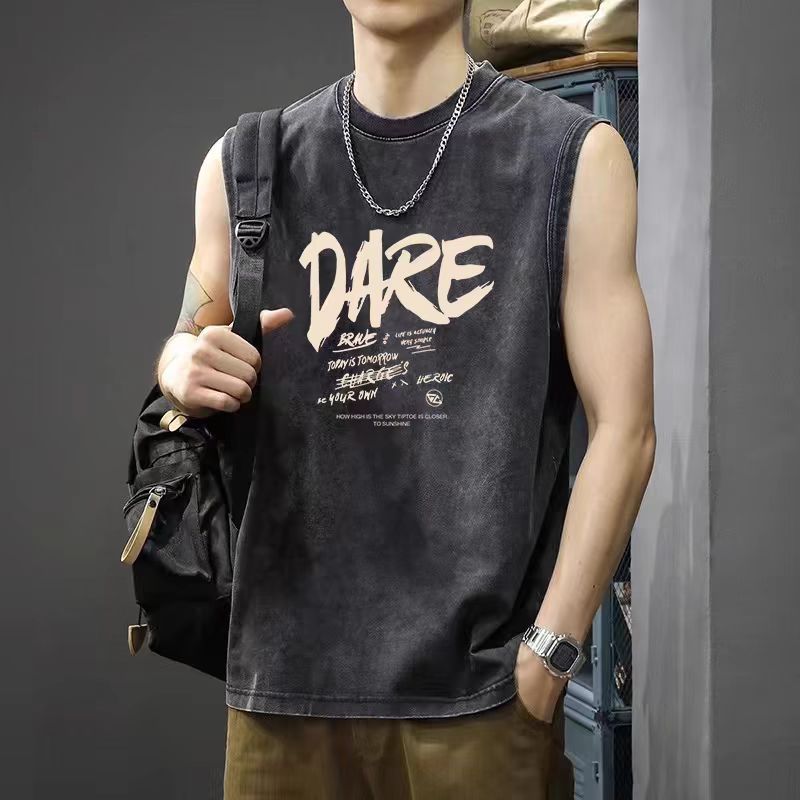 240 グラムベストメンズ夏 INS ハンサムルーズバスケットボールユースキャンパススポーツフィットネス純綿アウターノースリーブベスト