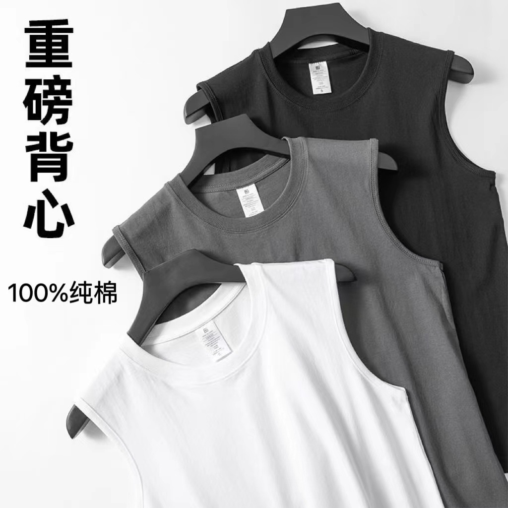 2023 ヘビーウェイトノースリーブ Tシャツメンズサマースポーツベスト白ルーズラウンドネックチョッキ無地綿アンダーシャツ