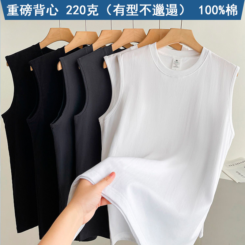 重ポンド220g純綿男性白ノースリーブ底付きtシャツ夏丸襟純色ゆるい半袖上着