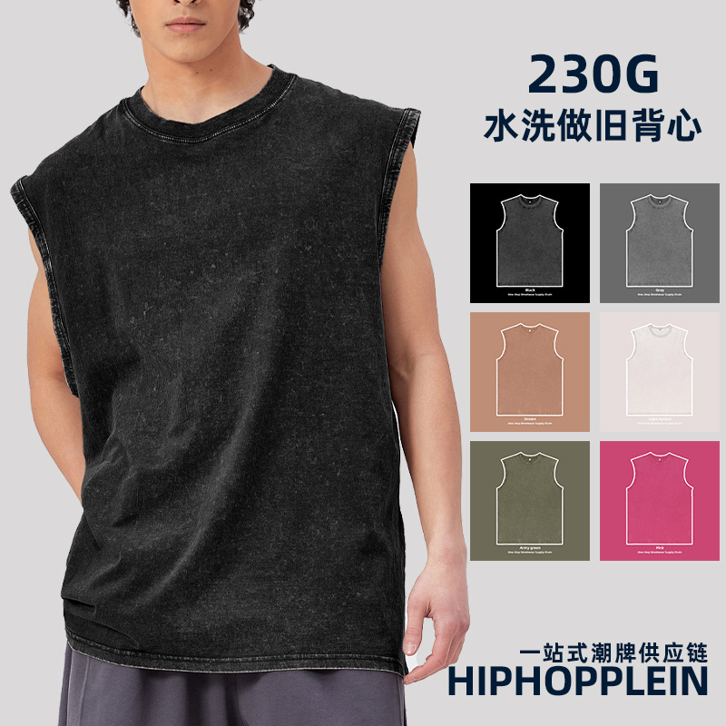 新品2023夏スポーツメンズベスト純色パーマフリー処理モーデールゆるいワイド肩ベスト