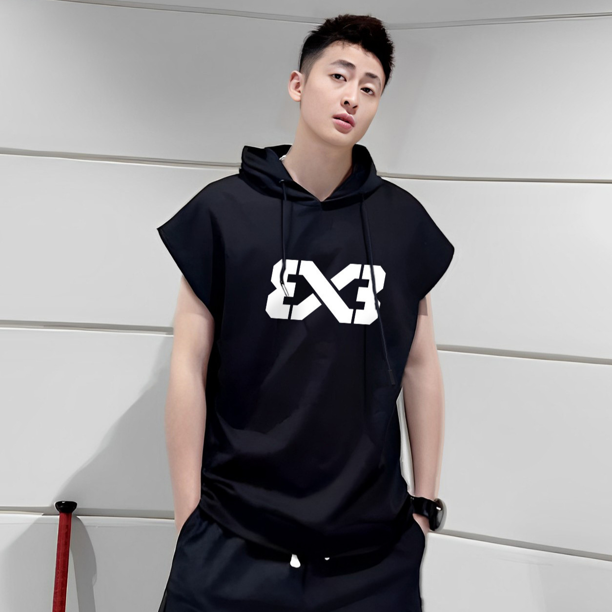 トレンディなブランドノースリーブフード付きベストメンズ夏速乾性バスケットボール 3v3 ゲームパーカーカットスリーブランニングスポーツベスト Tシャツ