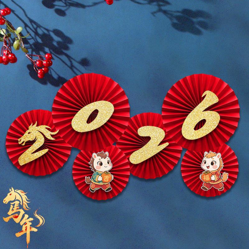 新型2025春節元旦元宵正月飾り紙扇花正月客間壁シーン配置ショーウインドー用品