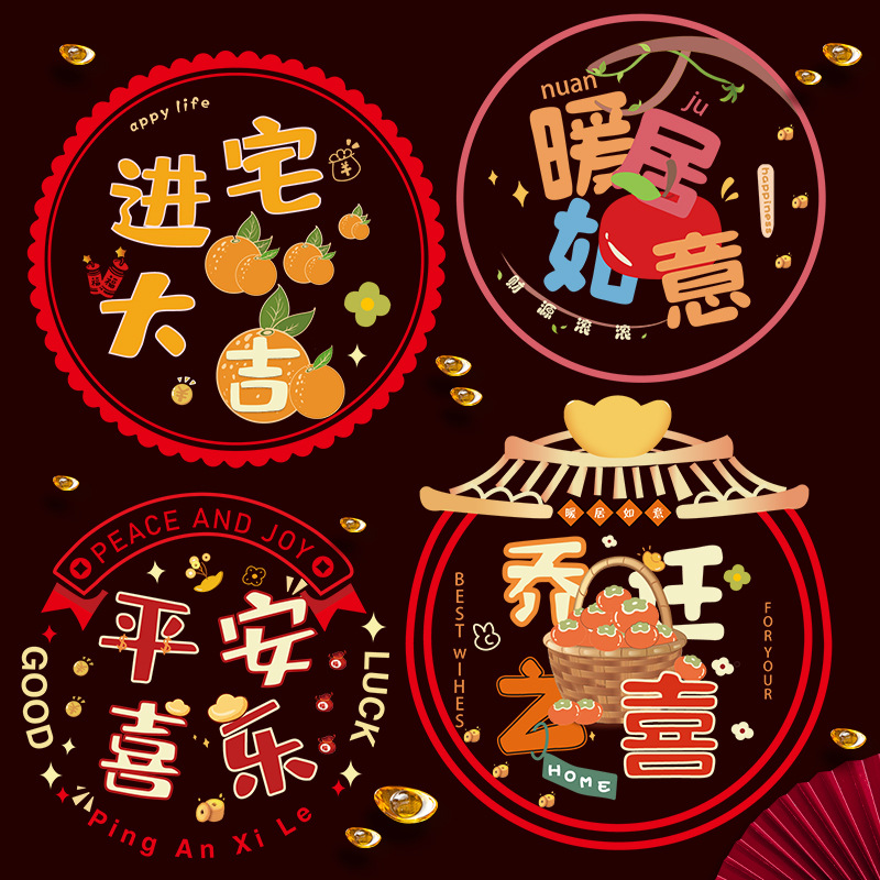 新築祝いの小福飾り、新居の装飾、飾り物、ドアステッカー、引っ越し祝い、新居への引っ越し儀式用品、新築祝い