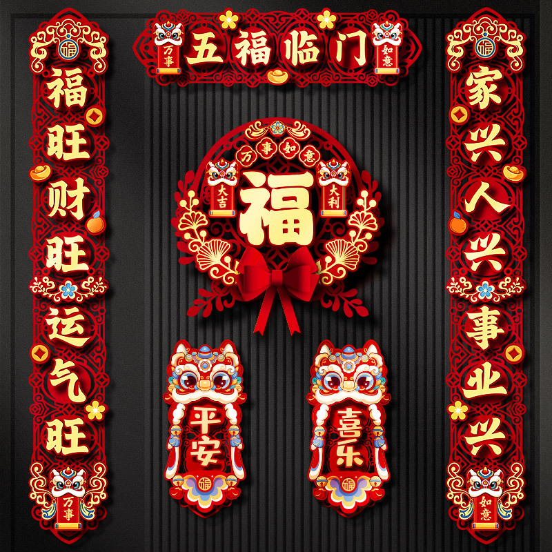2025新型蛇年対聯新年磁気吸引春聯家庭用旧正月福字門貼り元旦装飾用品