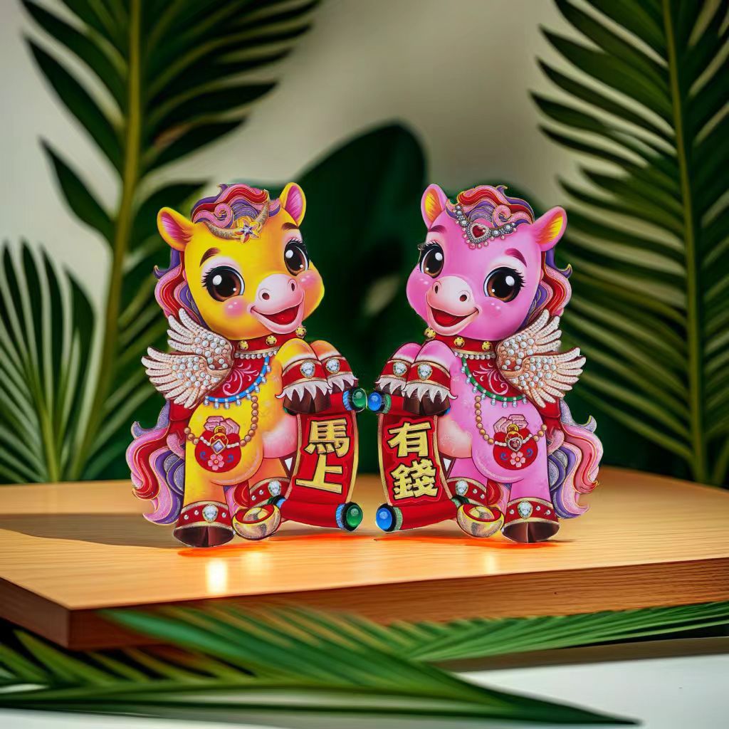 2026马年立体毛绒植绒生肖立体对贴门贴玻璃贴新年卡通年画年货