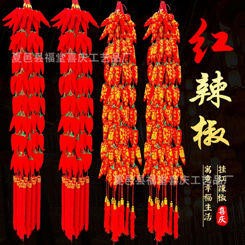 大紅絨布唐辛子串ストラップ新年旧正月福袋串スーパーデパート装飾移転配置用品卸売り