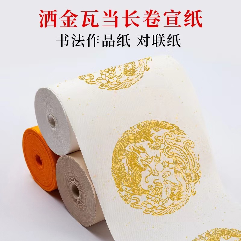 龍鳳瓦当撒金対聯紙厚さ宣紙長巻半生熟白色擬古毛筆書道作品紙