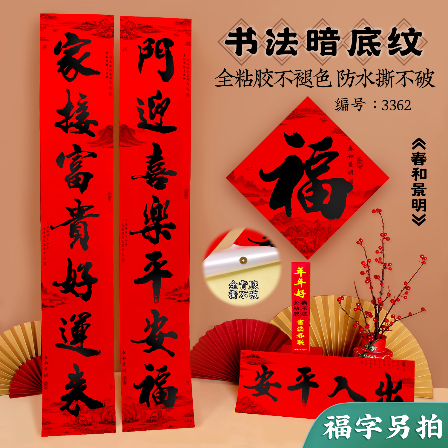 絨毛対聯2025蛇年春節自己粘着バックゴム百福大気書道農村入戸門創意春聯