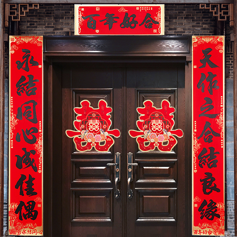 結婚式用品、結婚式の祝福の言葉、結婚式の対句、ドアの書道、箱入りの家のドアの結婚式の対句、永遠の結婚の誓い