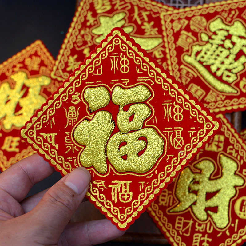 2025蛇年新年新型春節高級生肖立体植毛福字門貼り壁貼り年画メーカー卸売り