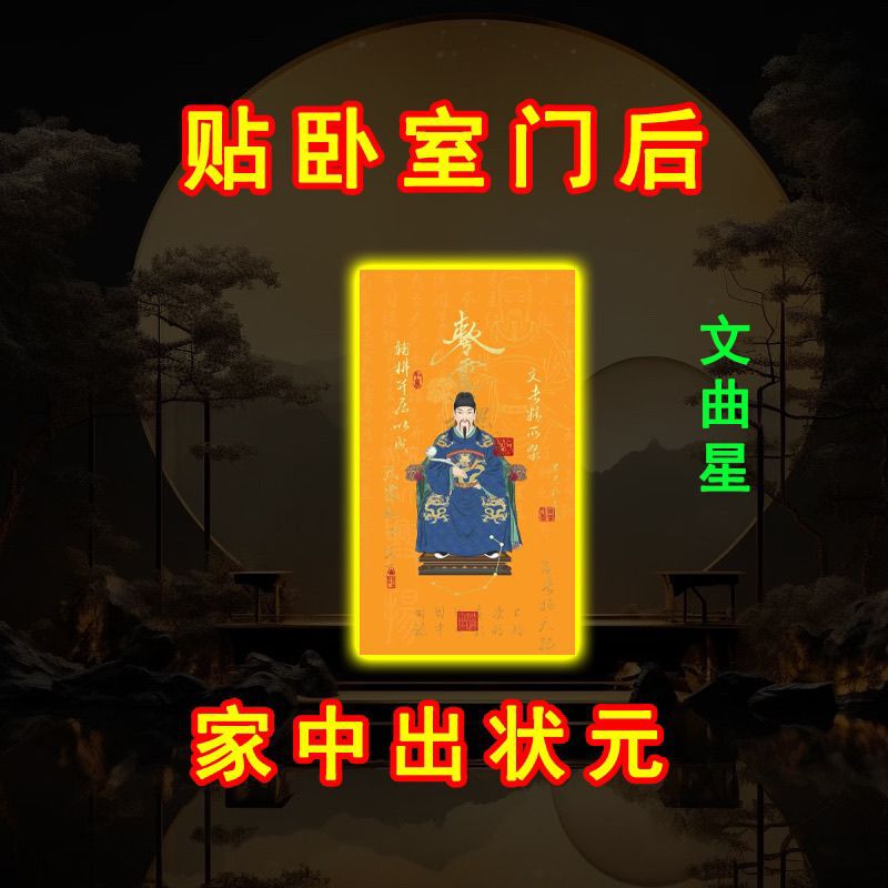 【学習専用】学業を順調に進めるための金の表、文曲星、帝君、従順で賢いドアステッカー飾り