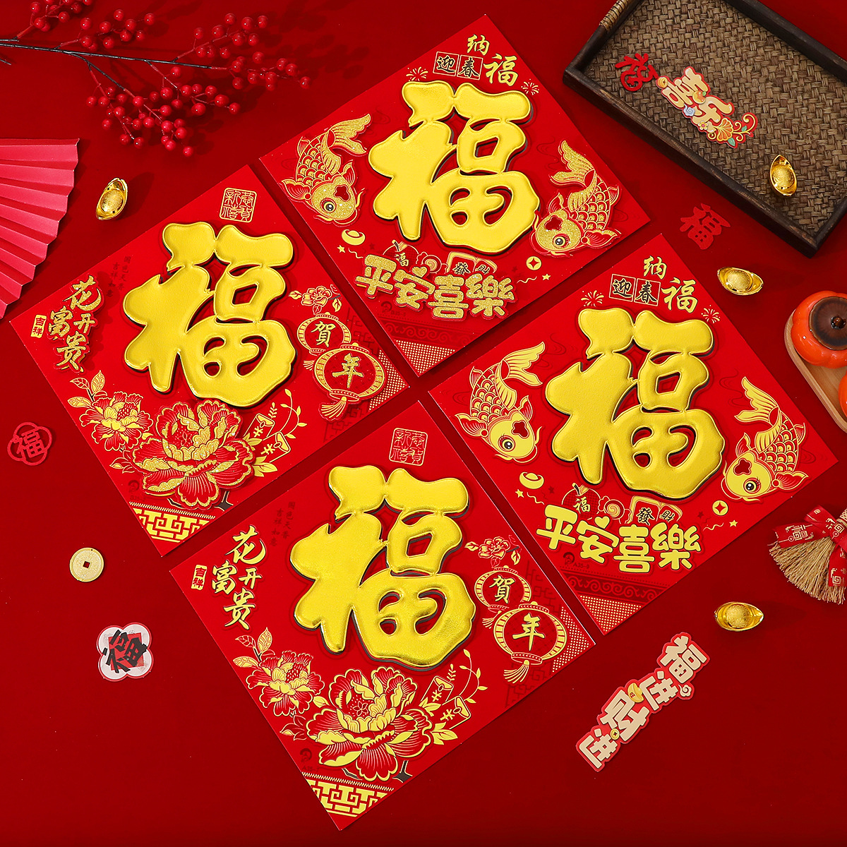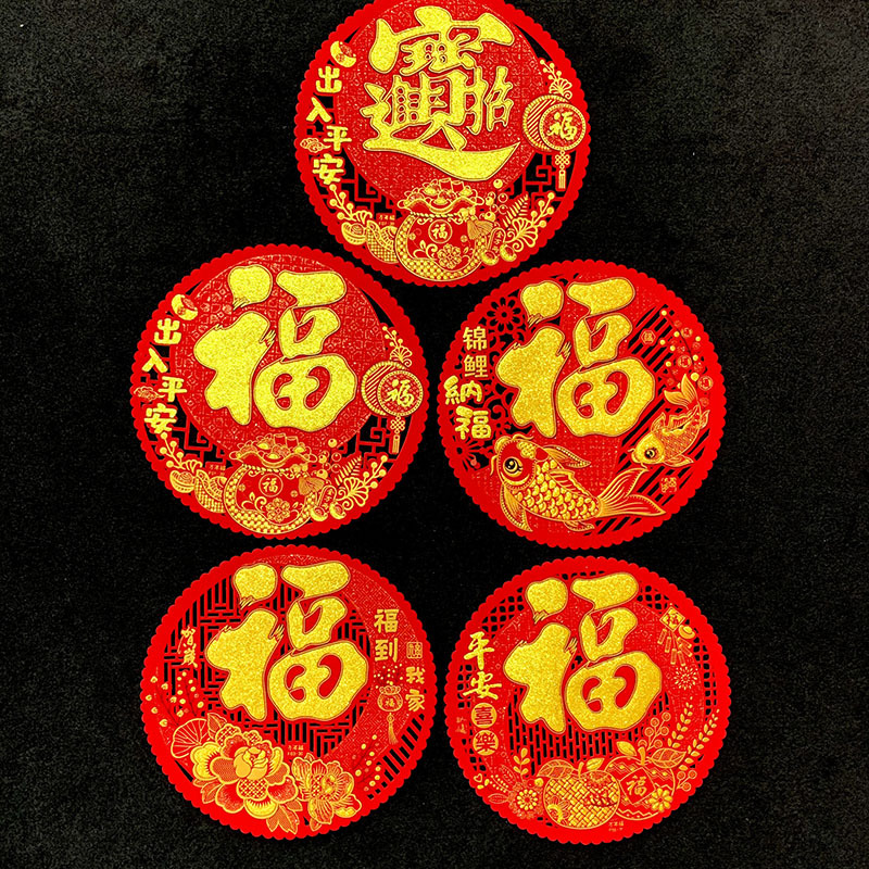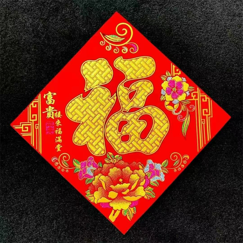 [2025新作] 春の字の福の字のフランネルの窓の花はゴムを持って新年の春節の年の商品のロットのガラスの扉から装飾を貼ります。