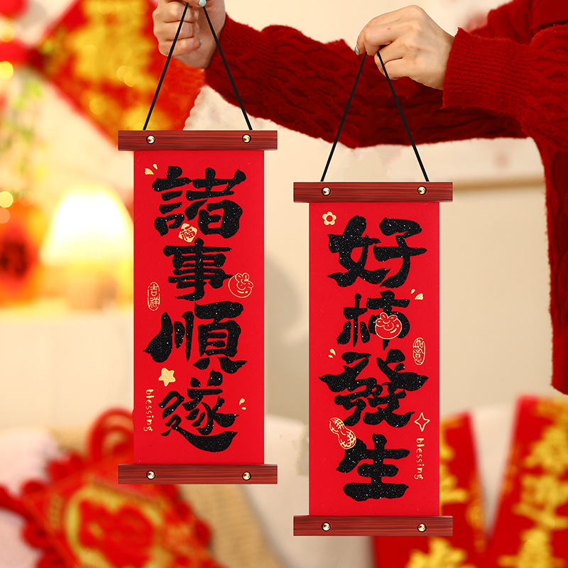 2025年春節用品、耐光性有名書家書道春節対句、卸売メーカー、大量在庫、祝福の言葉入りドアステッカー、金箔押し