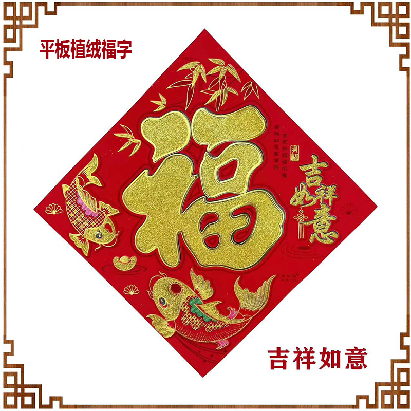 2025蛇年の新型の平板の福の紙の植毛の福の字は春節の玄関を貼って戸の扉に入って福の字の扉を飾って卸売りを貼ります。