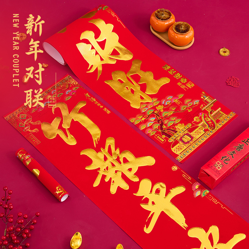 2026年新春用春聯、春節用厚手のベルベット金文字高級家庭用、裏面全面粘着付き、春節用春聯ギフトボックス