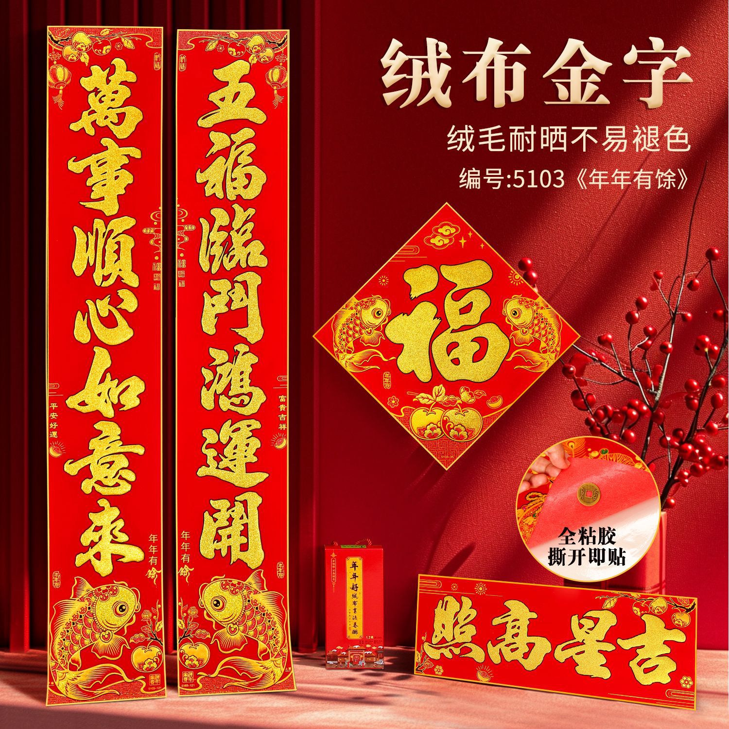 2024龍年新型ビジネス対聯絨毛生地商売繁盛門聯大門春聯年商品卸売りの露店