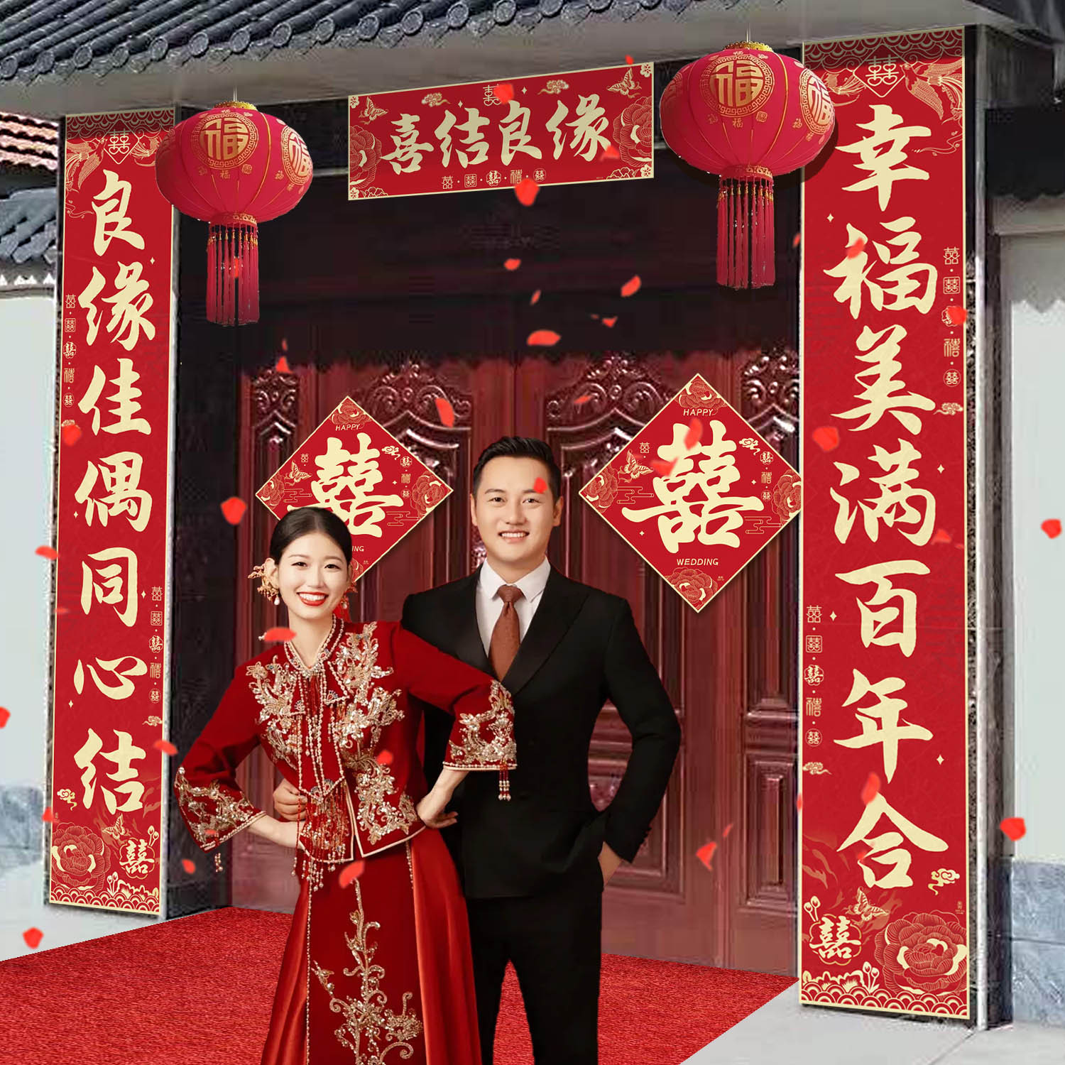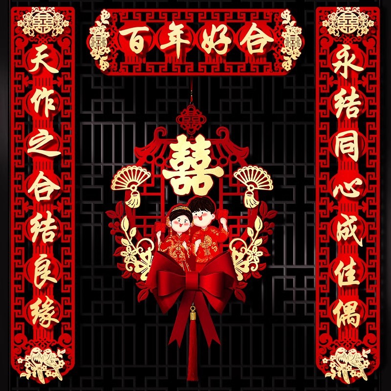 易飛結婚対聯男性側の玄関装飾喜聯新婚女性側が結婚する玄関に結婚部屋をセットして結婚式を配置する