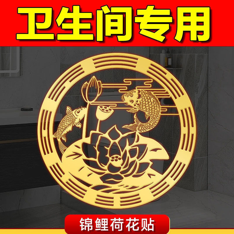 西北金属トイレのドアにトイレの汚染を解消する金の神様のステッカーを貼り付けるための鯉と蓮の絵