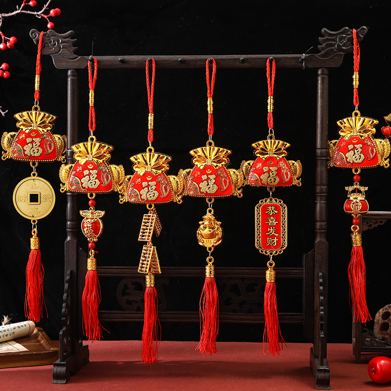 新年のお祝い金属マネーバッグピーナッツインゴット銅貨そろばん魚中国結び目小さなアクセサリー結婚式のお祝いペンダント