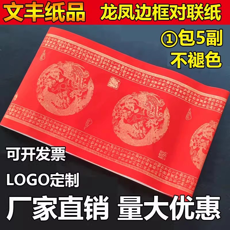 万年紅対聯紙空白紅紙春聯紙対聯専用紙龍鳳枠手書き春聯書道七言