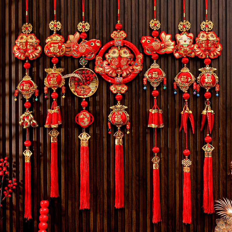 新年のペンダントは赤唐辛子のペンダントを飾ります。