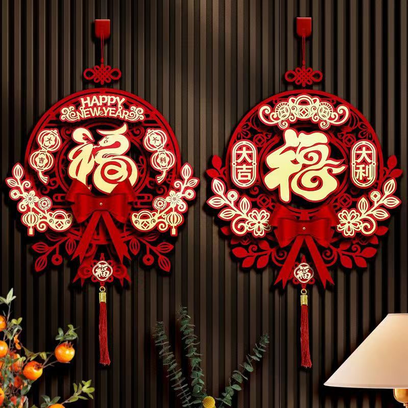 2025年の正月の装飾の福の字のペンダントの蛇の年の新型の客間の扉は春節のシーンを貼って年の用品を配置して飾ります。