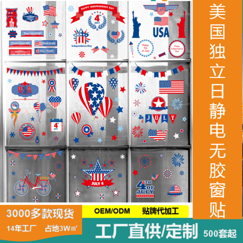 クリエイティブな新しいアマゾンの日の日の装飾窓ウィンドウ吸着フィルム愛国的なアメリカの国旗両面ウィンドウステッカー