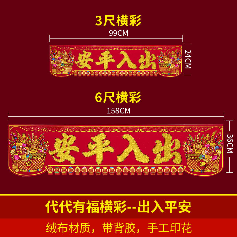 2024年新年用品大横聯綿布横彩四字春飾り門口貼り入平安横ロットドア貼り