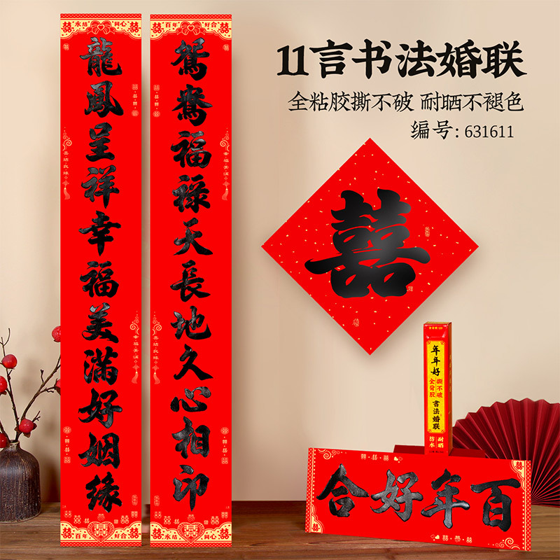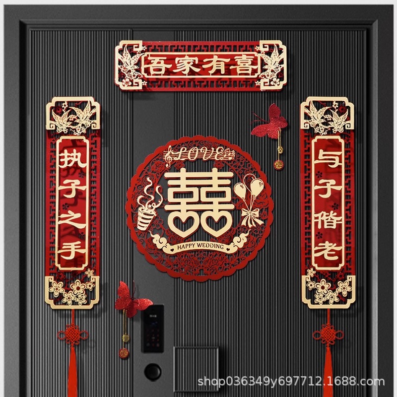 新しいスタイルの毎年良い黒文字書道 11 言葉完全粘着ウェディング グリーティング ドア装飾新婚男性と女性のウェディング グリーティング