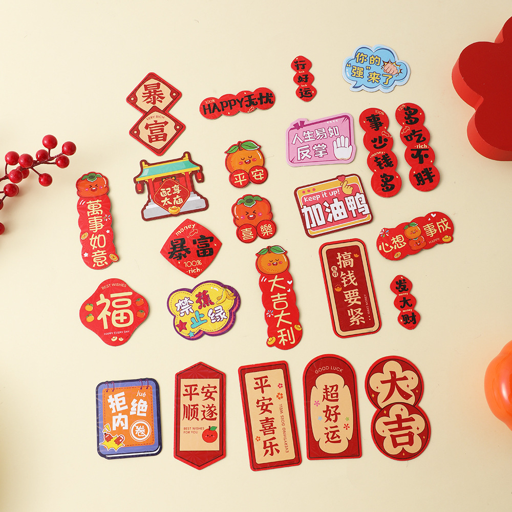新年と春祭りの国民的トレンドの小さな対句、創造的なお祝いの漫画の柔らかい磁気冷蔵庫用マグネット、インターネット有名人の興味深いテキストの冷蔵庫用マグネット